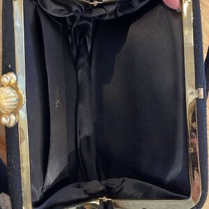 Vintage Bobbie Jerome Womens Gold & Rhinestone Clasp Evening Clutch Purse Black