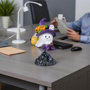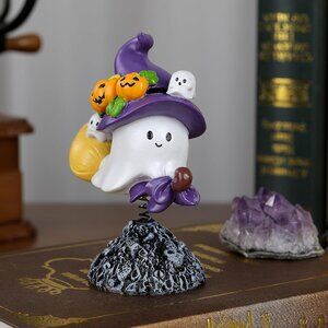 * Exquisitely Spooky Design: Expertly crafted riding a miniature broomstick, our ghost wears a detailed witch's hat topped with a festive pumpkin accent—the perfect blend of whimsical and Halloween-spooky