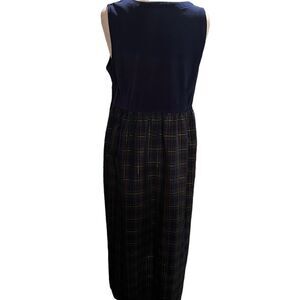 Bobby Brooks Maxi Dress Appliquéd Navy Green Red Gold Plaid size Lg