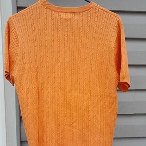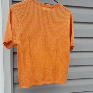 Bobby Chan Cable Knit Short Sleeve Silk Cotton Blend Orange XL Top