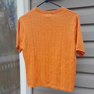 Bobby Chan Orange Cable Knit Short Sleeve Top Silk Cotton Blend Women's XL