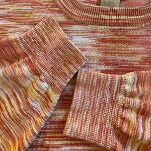 Keywords: Bobby Chan, women's sweater, pullover, silk blend, multicolor, marled pattern, ribbed cuffs, crew neck, long sleeve, knit sweater, casual wear, office wear, pre-owned sweater, Resortwear, Golf, cruise, Vacation