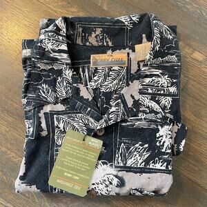 Bobby Chan Silk Hawaiian Shirt Men’s L Black Tan Palm Tree Aloha NWT Resort