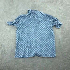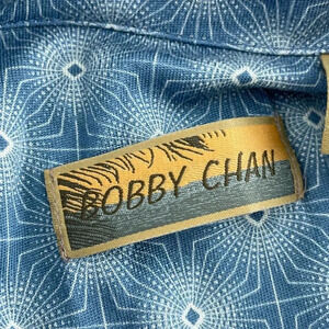 Bobby Chan XL Blue Silk & Cotton Mens Short Sleeve Button-Up Shirt 2738