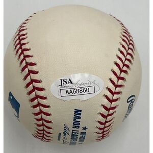 This official Major League Baseball is signed by legendary manager Bobby Cox, celebrating his 2014 Hall of Fame induction. Complete with a JSA Certificate of Authenticity, this collectible comes in a protective plastic case, making it a prized possession for baseball enthusiasts and collectors alike.
