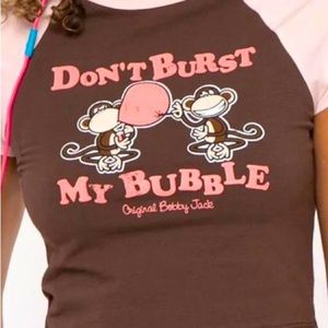 Bobby Jack Cropped Tee - Don’t Burst My Bubble - Large - Brown and Pink