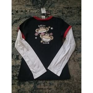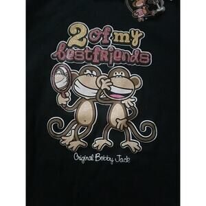 This Bobby Jack long sleeve girls shirt is perfect for any casual occasion. The pullover style with a hoodie neckline and logo accents add a touch of cuteness to the shirt. Made of 100% cotton, the shirt is comfortable to wear and machine washable for easy care. The shirt is black in color with white and red accents and features a cute monkey theme.