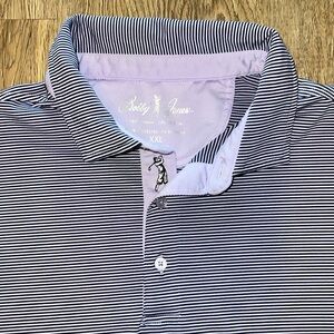 Bobby Jones Performance Mini Feed Stripe Short Sleeve Polo Shirt XXL Lavender & Navy in excellent condition!