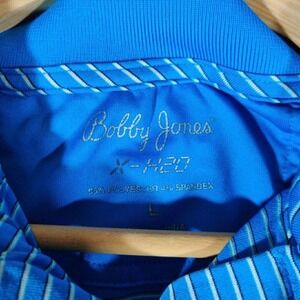 Bobby Jones Shirt Mens Large Blue Striped Golf Performance Polo Short Sleeve