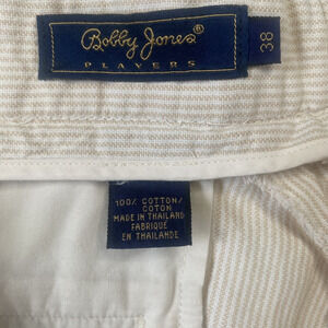 Bobby Jones Shorts Mens Size 38 Cream Tan Stripe Nautical Preppy Old Money. Good used condition. No ris or stains. Fabric shows normal signs of wear. 100% cotton, not stretchy.