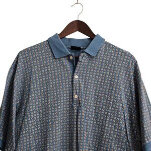 Bobby Jones Vintage Blue Medallion Print Italian Cotton Golf Polo Sz XL