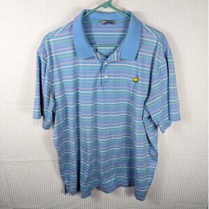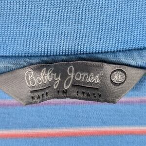 Bobby Jones XL Masters Logo Blue Multi Stripe Polo Shirt Made Italy Cotton Golf
