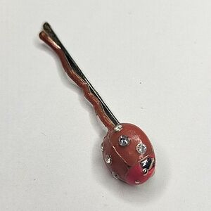 Vintage lady bug with crystals enamel Bobby Pin. There's a chip in the enamel near the eye. Please see picture.