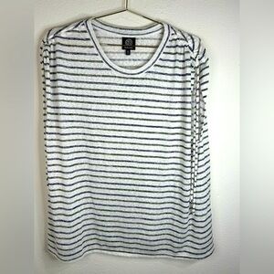 Keywords: Bobeau 3X top, plus size striped shirt, casual sleeveless top, soft stretch knit blouse, women’s plus size clothing, comfortable everyday wear, breathable knit top, relaxed fit.