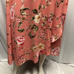 Bobeau Asymmetrical Midi Skirt Womens Size Medium Coral Floral Faux Wrap Fairy