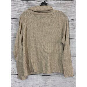 Bobeau Beige Waffle Knit Cowl Neck Long Sleeve Top M
