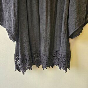 Bobeau Black Boho Tunic Top Crochet Hem Flowy Sleeves Womens 1X Witchy Whimsigoth