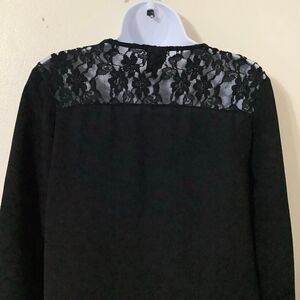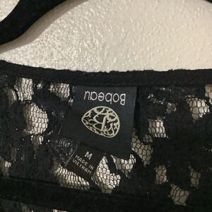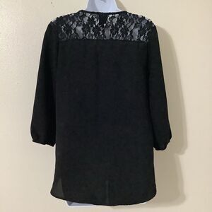 Bobeau Black Lace Cutout Boho Witchy Dark Flowy Hippie Casual Peasant Blouse M