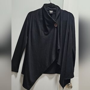 Bobeau Black One Button Asymmetrical Fleece Wrap Cardigan XS