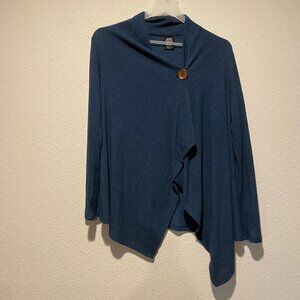 Bobeau Blue Asymmetrical Wrap Cardigan - Petite Medium, One Button Closure