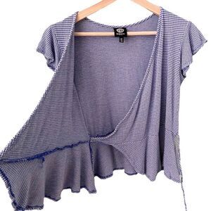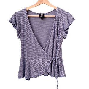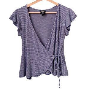 Bobeau Blue Check Sleeve Wrap Top in Size Small Petite