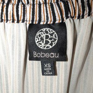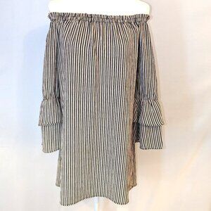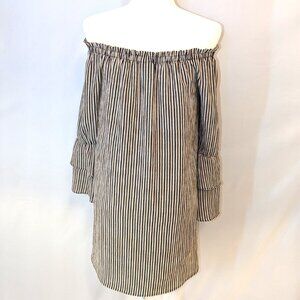 Bobeau | Boho Off Shoulder Striped Ruffle Sleeve Dress Navy, Rust, Cream | Size XS