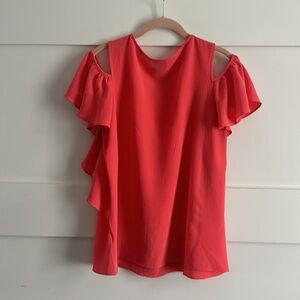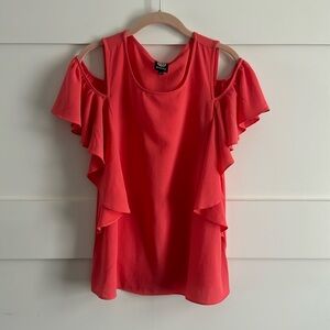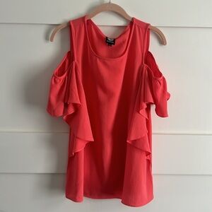 Bobeau Cold Shoulder Ruffle Sleeve Top