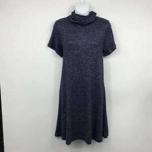 Bobeau Cowl Neck Space Dye Print Sweater Dress M Built-in Face Mask Gray NWT