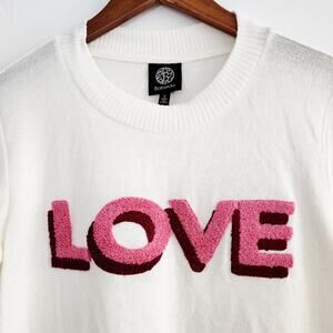 Bobeau Cream Pink & Burgundy Love Embroidered Pullover Sweatshirt Size Small