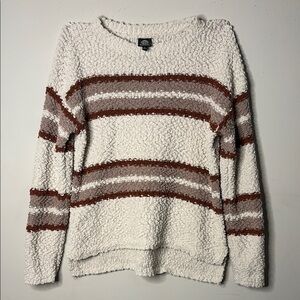 Bobeau Cream and Brown Crew Neck Sweater with Stripes