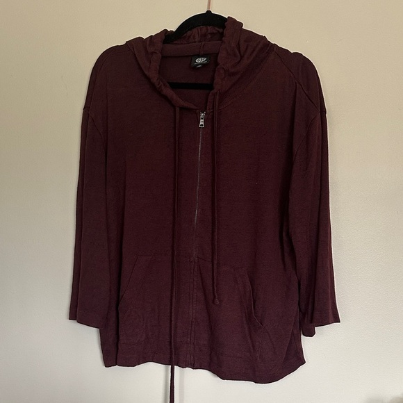 Bobeau Deep Burgundy Zip-Up Hoodie