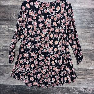 Bobeau Floral Long Sleeve Dress - Black and Red