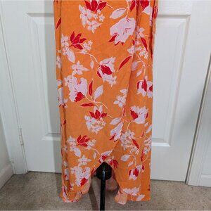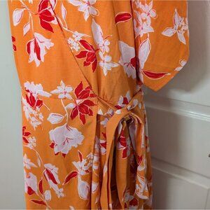 Bobeau Floral Maxi Wrap Dress Womens Size XL Orange Dolman Sleeve Tropical