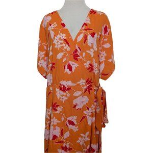Bobeau Womens Orange Floral Tropical Dolman Sleeve Maxi Wrap Dress Size XL