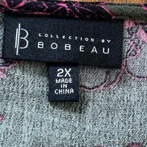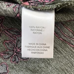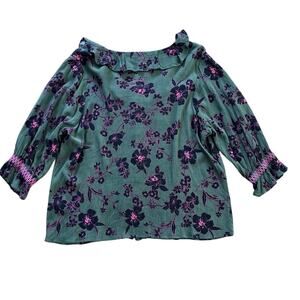 Bobeau Floral Ruffle Button Front Top Size 2X Olive Fuchsia 3/4 Sleeve Smocked