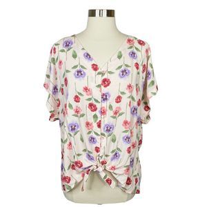 Bobeau Floral Tie Up Button Down Blouse - Size Large