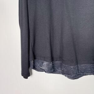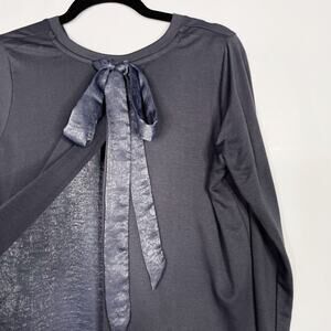 Bobeau Gray Blue MP Tie Open Back Long Sleeve Top Medium Petite Crew Neck