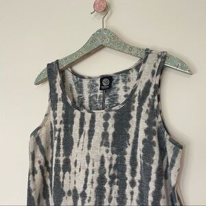 Features: Light gray and cream tank top, flowy, sleeveless, vertical tie die prin