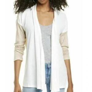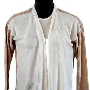 Bobeau Ivory Oatmeal Waffle Long Sleeve Open Cardigan - Size Large