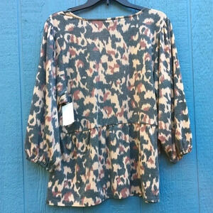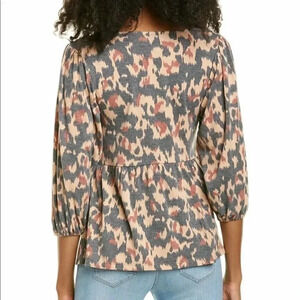 Bobeau Leopard Print 3/4 Puff Sleeve Babydoll Peplum Top Plus Size 3X 3 Animal