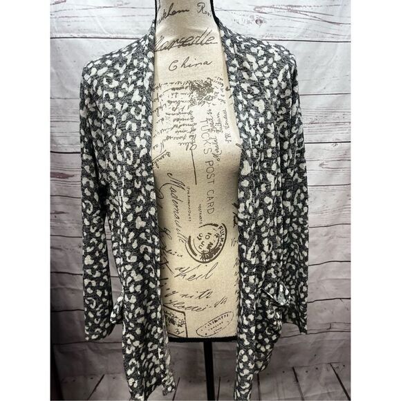 Bobeau Medium petite open cardigan sweater white and black-2162
