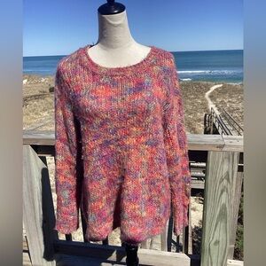 Bobeau Multicolor Fuzzy Knit Sweater – Size XL