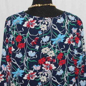 Elegant Bobeau navy loral pattern pull over blouse. Long sleeve and v-neck.