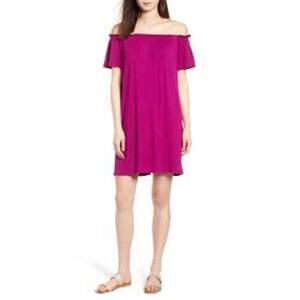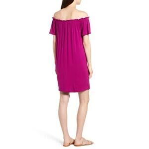 Bobeau Off The Shoulder Knit Magenta Dress…
