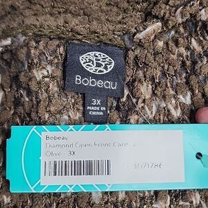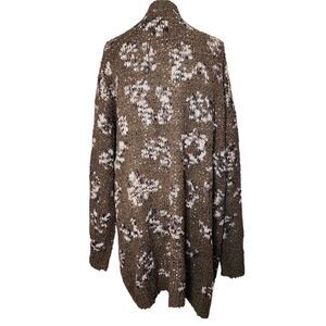 Cozy olive cardigan with textured knit. Features long sleeves and open front. Perfect for layering.