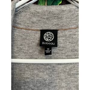 Bobeau Open Front Long Sweater Cardigan Kimono Poncho w Collar Brown Grey Sz 1X
