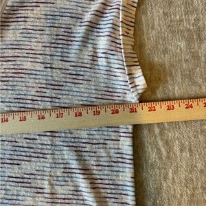 Stylish V-neck tee with pastel stripes. Soft and comfortable. Perfect for everyday wear.