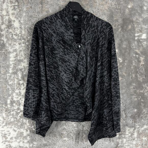Bobeau Petite Size Sp Abstract Button Cardigan Sweater Gray Long Sleeve