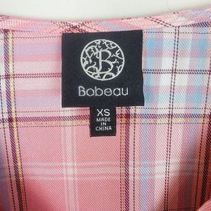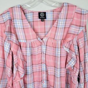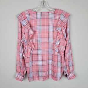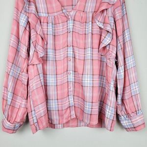 Bobeau Pink Blue Ruffle Button Down Long Sleeves Plaid Babydoll Shirt Size XS