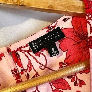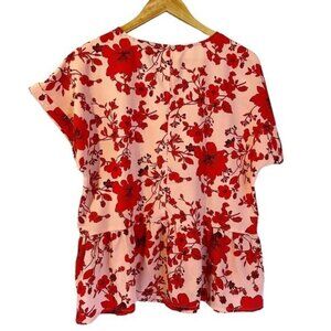 Bobeau Pink & Red Floral Short Sleeve Peplum Blouse S Office Career Summer